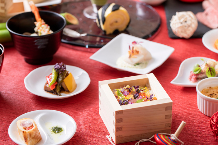 シェフおすすめの料理とお子様に嬉しいメニューが充実した、ご家族で楽しめるお正月らしい華やかなラインナップ。ローストビーフのカッティングサービスや干支にちなんだデザートなど、目でも舌でもお楽しみいただけます。