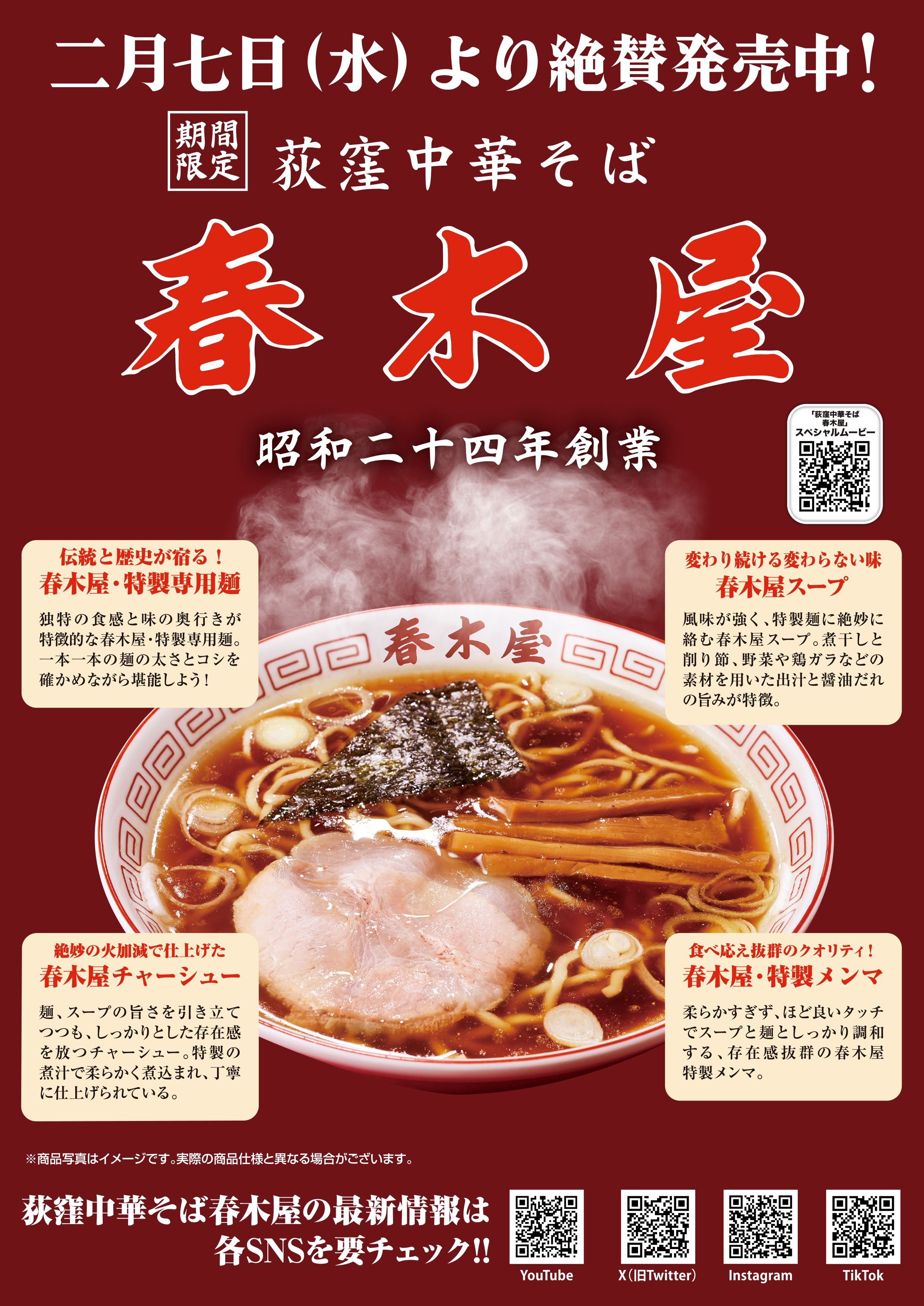 「ラーメンは世界に誇る日本のエンターテインメントである!!」をコンセプトに「らあめん花月嵐」のブランド名で、214店舗(海外27店舗含む)を運営するグロービート・ジャパン株式会社(本社 東京都杉並区)は、『荻窪中華そば 春木屋』を、2024年2月7日(水)より国内の花月嵐で期間限定販売を開始いたしました。