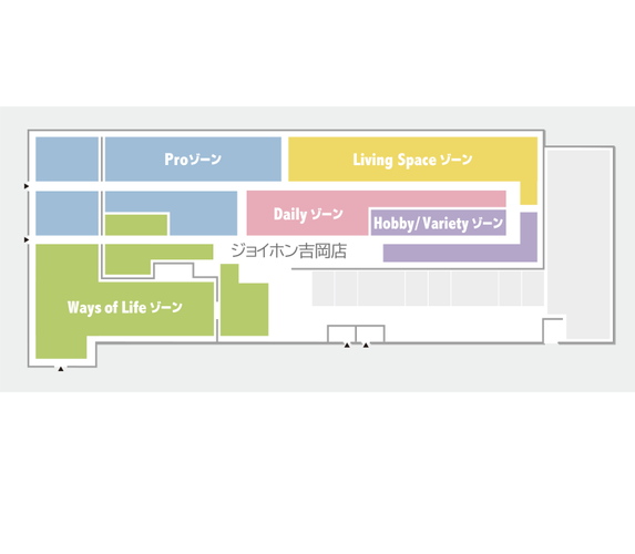 「ジョイホン吉岡店」の店内はエリア商圏とお客様ニーズに合致する5つのゾーンで構成されており、それぞれに「圧倒的」を共通キーワードとしたテーマを設定して専門店の集合体の世界観を創り出しています。
