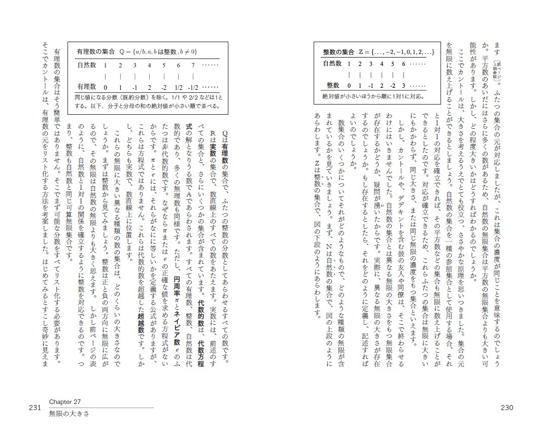 1章 数学の印象(しるし) 2章 叡智の発掘 3章 ある書記官の物語 4章 ピタゴラス教団の秘密 5章 史上最高の数学ベストセラー 6章 証明はどこに行った? 7章 数論の夜明け 8章 無の起源 9章 バグダッドからの残響 10章 数学のタペストリー 11章 伝統と革新のあいだ 12章 美は数学者の目に宿る 13章 三次方程式(キューブ)をめぐる大惨事 14章 代数コードを解読せよ 15章 宇宙の調和 16章 数学マシーン 17章 インターネットか、メルセンヌか 18章 けっしてやめられないゲーム 19章 閉ざされた扉と開かれた心 20章 ライオンと魔女 21章 旅する数学者 22章 近代幾何学とその痕跡 23章 無から生まれた新しい世界 24章 ロマン派数学 25章 不思議の国の論理 26章 混沌の静かなる誕生 27章 無限の大きさ 28章 次々に明らかとなる次元の拡がり 29章 世界の数学者が団結 30章 完璧さの追求 31章 ラムゼーと仲間たち 32章 抽象代数の母 33章 ニコラスとよばれる仲間たち 34章 ゲームで遊ぼう 35章 カリフラワーと海岸線 36章 未完の仕事 37章 マリアムの魔法の杖 38章 数学の必勝法 39章 新しい次元への旅の準備 40章 新しい数学の夢 訳者あとがき、索引