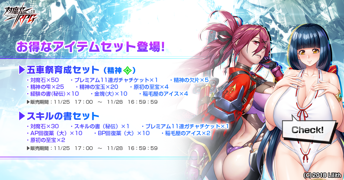 『対魔忍RPG』にて五車祭ガチャをお知らせいたします。さらにお得なアイテムセットも販売!