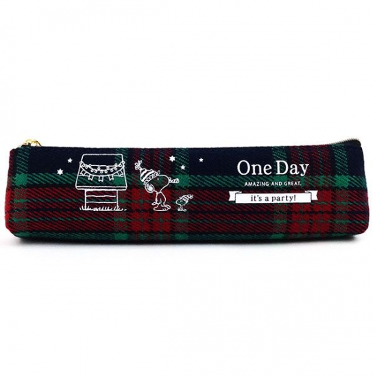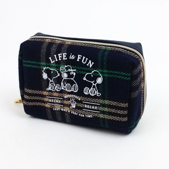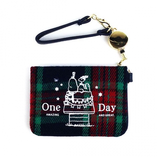 見てください!このかわいさ♡暖かそうな布地の素材に、赤とグリーンのクリスマスカラーのチェックがオシャレですよね。新作のチェック柄ポーチはスヌーピーのイラストもちょっとおめかししています。サイズは14×10×8cmで、使い勝手のいい定番サイズです。