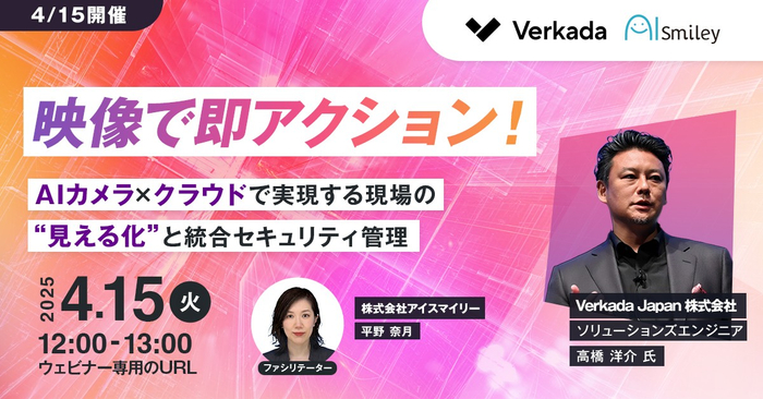 AIポータルメディア『AIsmiley』を運営する株式会社アイスマイリー(東京都渋谷区、代表取締役:板羽晃司)は、2025年4月15日(火)12時からAIカメラ×クラウド活用をテーマにウェビナーを開催します。