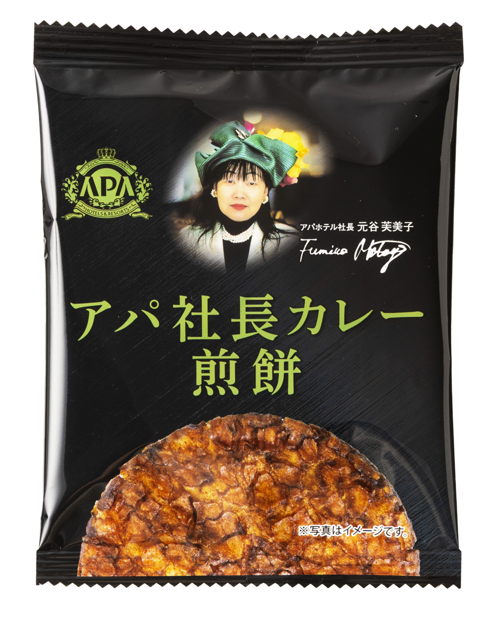 「アパ社長カレー煎餅」は「アパ社長カレー」のカレールーを使用して、オリジナルスパイスとまろやかなソースの甘みを生かした深みのある味わいを再現し、大判でさくさくの揚げ煎餅に味付けした商品です。