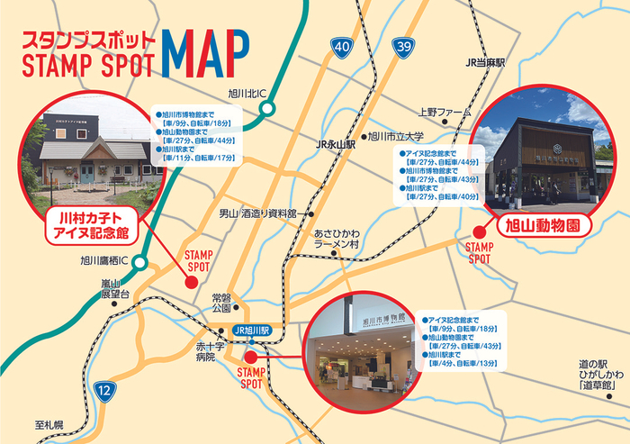 ※旭山動物園内のスタンプスポットは、アイヌとゆかりのある動物の園舎を含めた5カ所に設置。スタンプスポットには、川村カ子トアイヌ記念館監修によるその動物のイラストや解説を掲載しています。