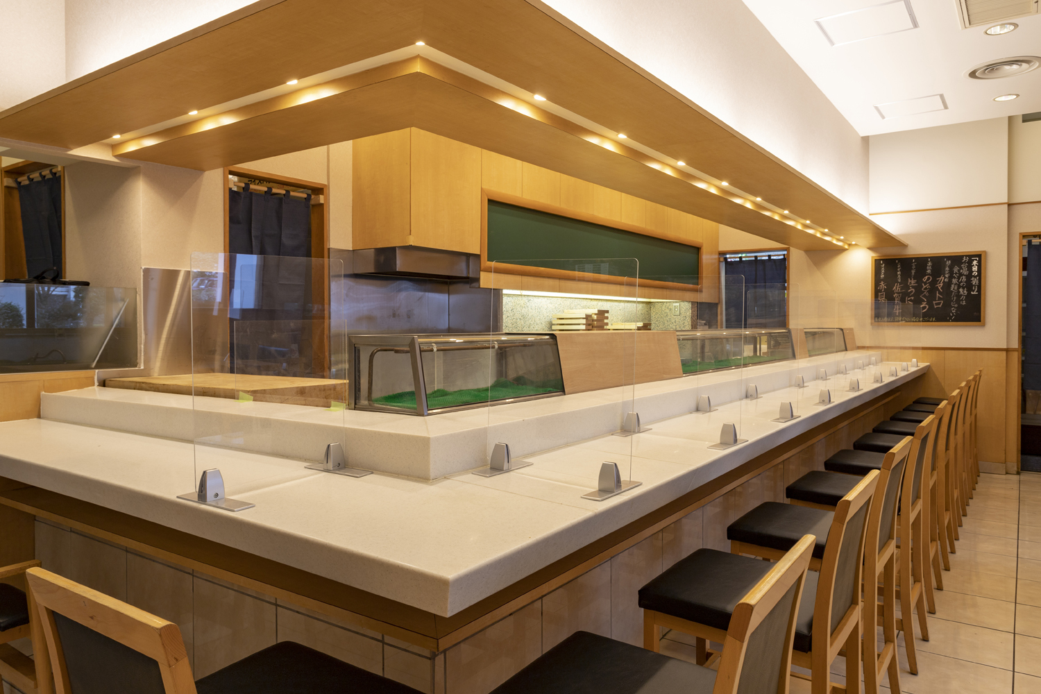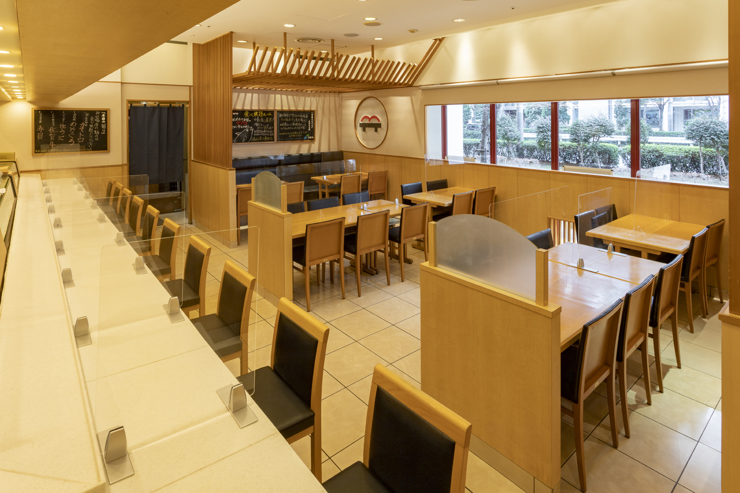 アクリル板、ゆとりを持たせた席間隔、クリーンな換気でコロナ対策も万全。