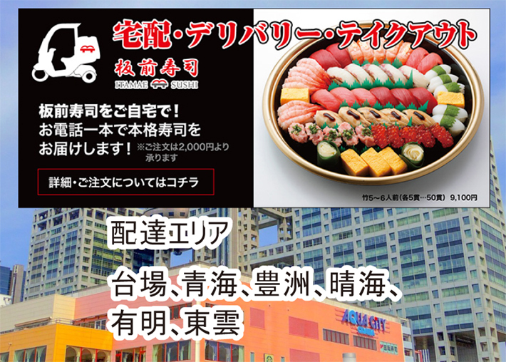 板前寿司をご自宅で!ますます便利になった板前寿司が配達いたします。