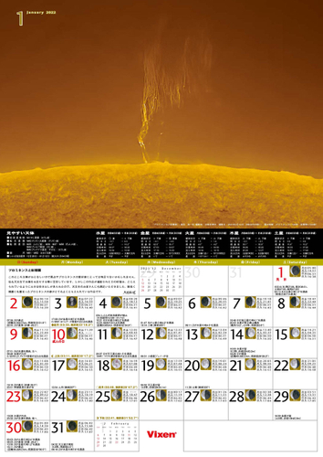 総合光学機器メーカー株式会社ビクセン(本社:埼玉県所沢市、代表取締役:新妻和重)は、「ビクセンオリジナル天体カレンダー2022版」を2021年12月2日(木)より発売します。さまざまな天体写真が毎月のページを飾る、天文情報満載のカレンダーです。