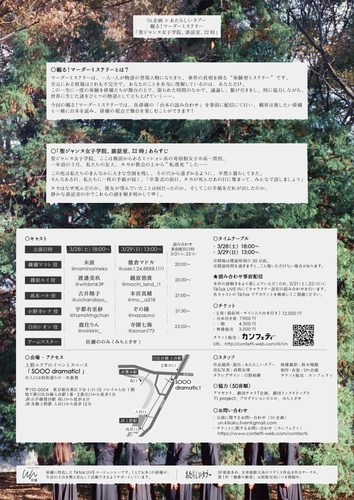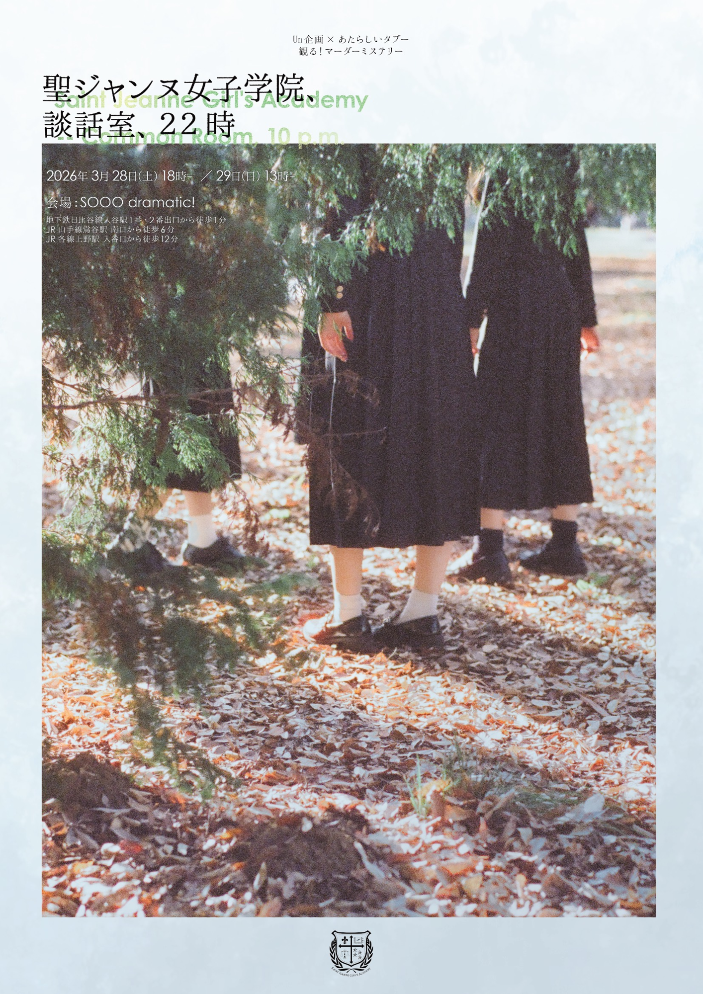 観る!マーダーミステリー「聖ジャンヌ女子学院、談話室、22時」が2026年3月28日 (土) 〜 2026年3月29日 (日)にSOOO dramatic!(東京都 台東区 下谷 1丁目11-15)にて上演されます。