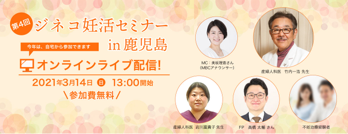 第4回ジネコ妊活セミナーin鹿児島 3/14オンラインライブ配信!