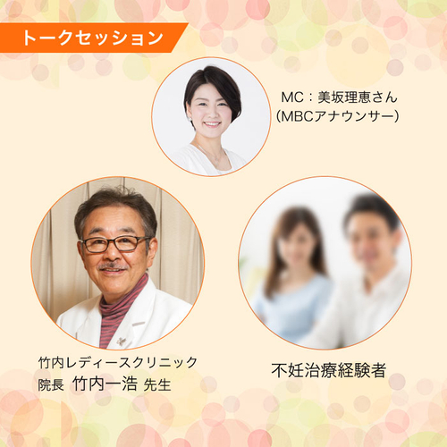 また、トークセッションでは、実際に不妊治療を経験されたご夫婦が登壇し、妊娠に至った経緯について竹内先生も交えてお話いたします。
