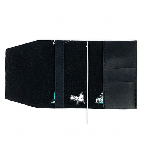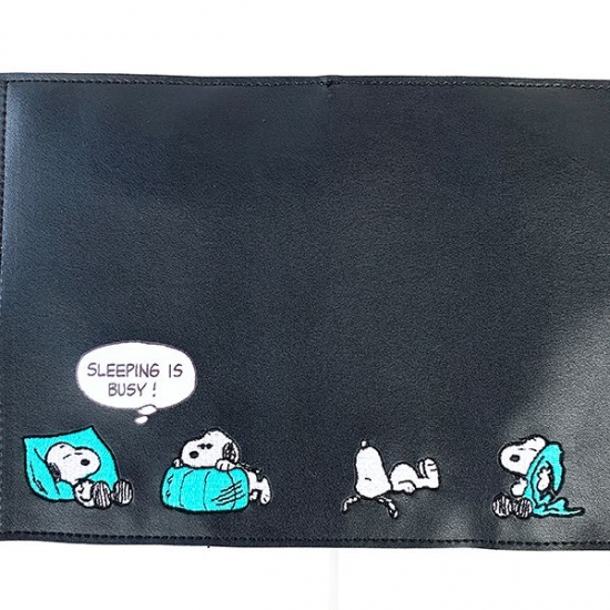 ブラックの背景に、スリーピングシリーズのスヌーピーがデザインされたブックカバーです。