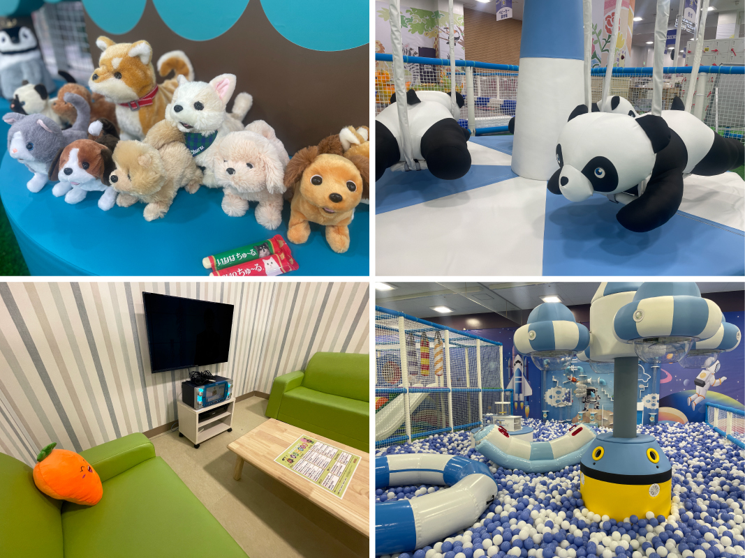パンダメリーゴーランドやひとり用観覧車などの楽しい乗り物や、可愛い動物達に癒される動物園、まるで宇宙空間のようなボールプールコーナーなど遊び尽くせない程のユニークなコーナーが大充実。