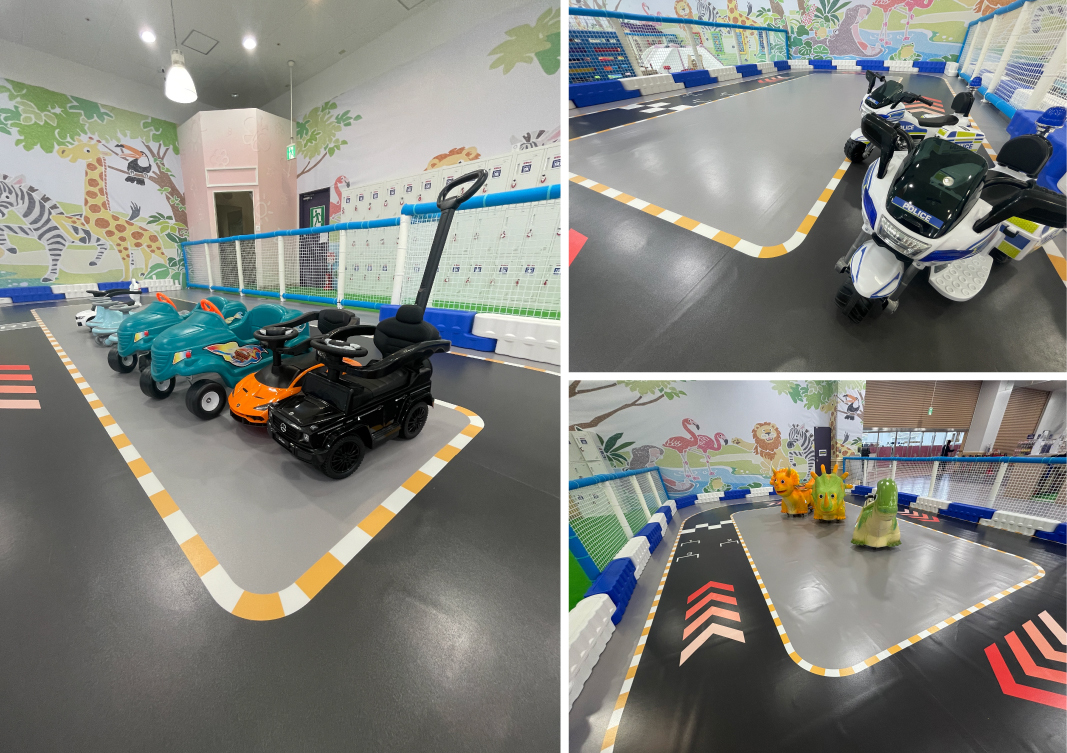 MAX店舗限定の電動バイクや、恐竜のカートなどお気に入りを選んでコース内のドライブをお楽しみいただけます。