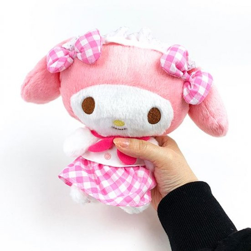 こちらのぬいぐるみは、カフェの制服に身を包んだマイメロディ♡ギンガムチェックがオシャレでかわいいんです。