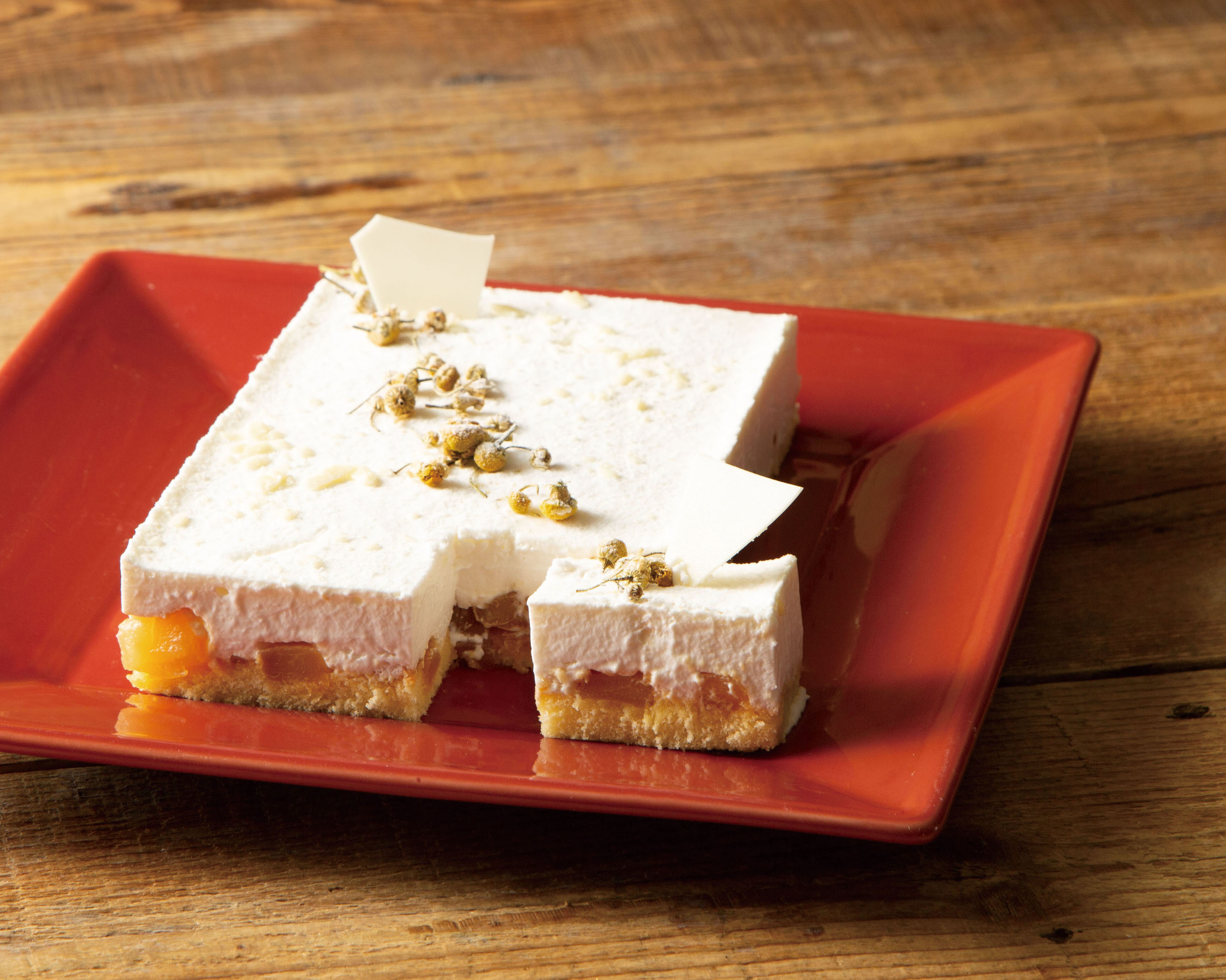 スリランカ産のカモミールを使用した、フワフワなムースの口どけの良さは感動もの。ごろごろと入った洋梨のシャキッ!とした食感をお楽しみいただける、贅沢なムースケーキに仕上げました。