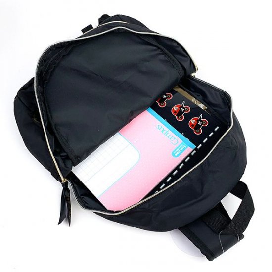 マチも広く収納力があるので、お出かけ以外にも通学用のスクリュックとしても使えちゃいます。ファスナーポケットが充実しているので、こまごまとした物を分けて入れられますよ♪ファスナー部分のリボンもキュートです。