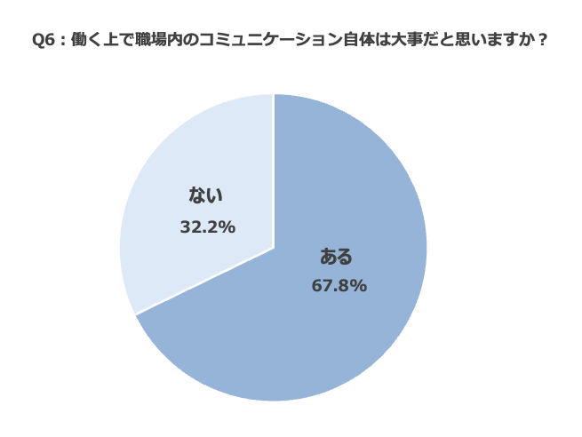 飲みニケーション反対派(Q1で「反対」または「どちらかといえば反対」と回答)も、約7割が職場内のコミュニケーションを重要視している一方で(Q6)、「自分の意見を言うのが苦手で発言しづらい(37.4%)」「相手の言動に気を使いすぎて疲れてしまう(36.7%)」「人となりが分からず接し方が難しい(24.7%)」「雑談が続かず沈黙が気まずい(23.4%)」など、心理的負担やコミュニケーションに対する苦手意識を抱えていることが分かりました(Q7)。