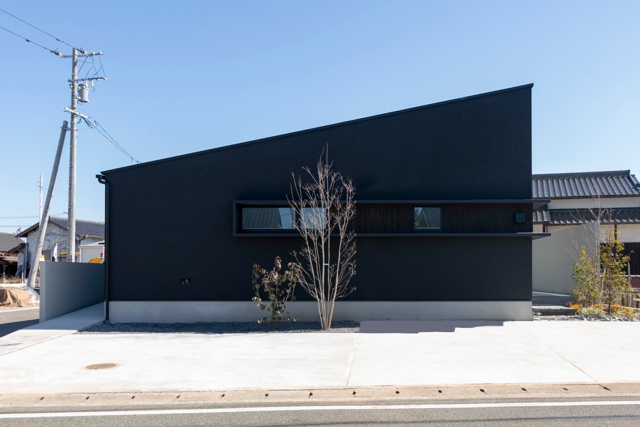 第二弾コンセプトは「中津に佇むカフェ」がテーマ。外観デザインは黒を基調とした塗り壁に、アクセントに木板貼りで仕上げ、すっきりとスタイリッシュなデザインです。