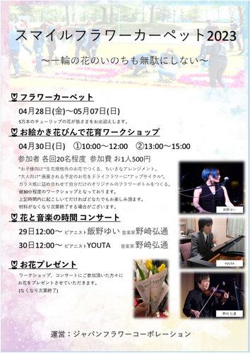 フラワーカーペットやワークショップを通じ、たいせつな学びの機会とできればと考えています。