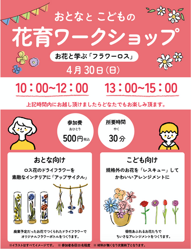 また、30日には親子で楽しめる「お絵描き花びんでつくる花育ワークショップ」も開催します。