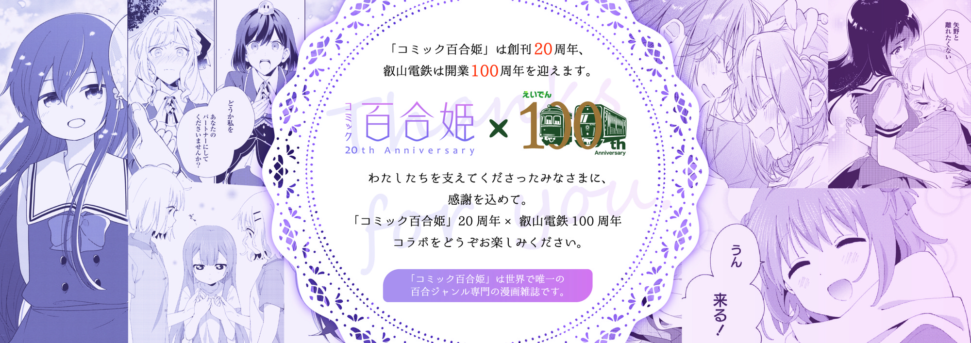 叡山電鉄株式会社(本社:京都市左京区、取締役社長:豊田秀明)では、2025年9月27日(土)に開業100周年を迎えます。以前からコラボレーション企画を通して交流がある株式会社一迅社(所在地:東京都新宿区、代表取締役社長:野内雅宏)発行の月刊コミック誌「コミック百合姫」が創刊20周年を迎えるのを記念して、「コミック百合姫 創刊20周年」×「叡山電車開業100周年」のコラボレーション企画を二回に分けて実施します。