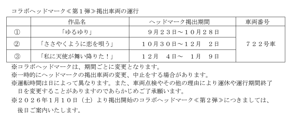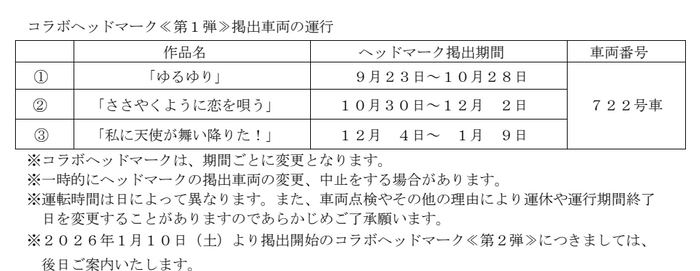 3.ラッピング電車、コラボヘッドマーク≪第1弾≫掲出車両の運行
