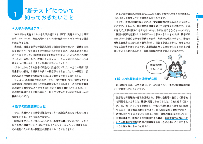 第2章の「数学に必要な読解力」や第3章の「共通テスト・実戦問題①②」から始めてもかまいません。ただし、“新テスト”の本質を知っておくために、後からでもいいので、第1章も必ず読んでおいてください。