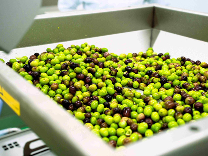 手摘みされたオリーブの実は選別され、園内の加工場の最新のイタリア製搾油機で丁寧に搾油され、フレッシュなエキストラバージンオリーブオイルへ。