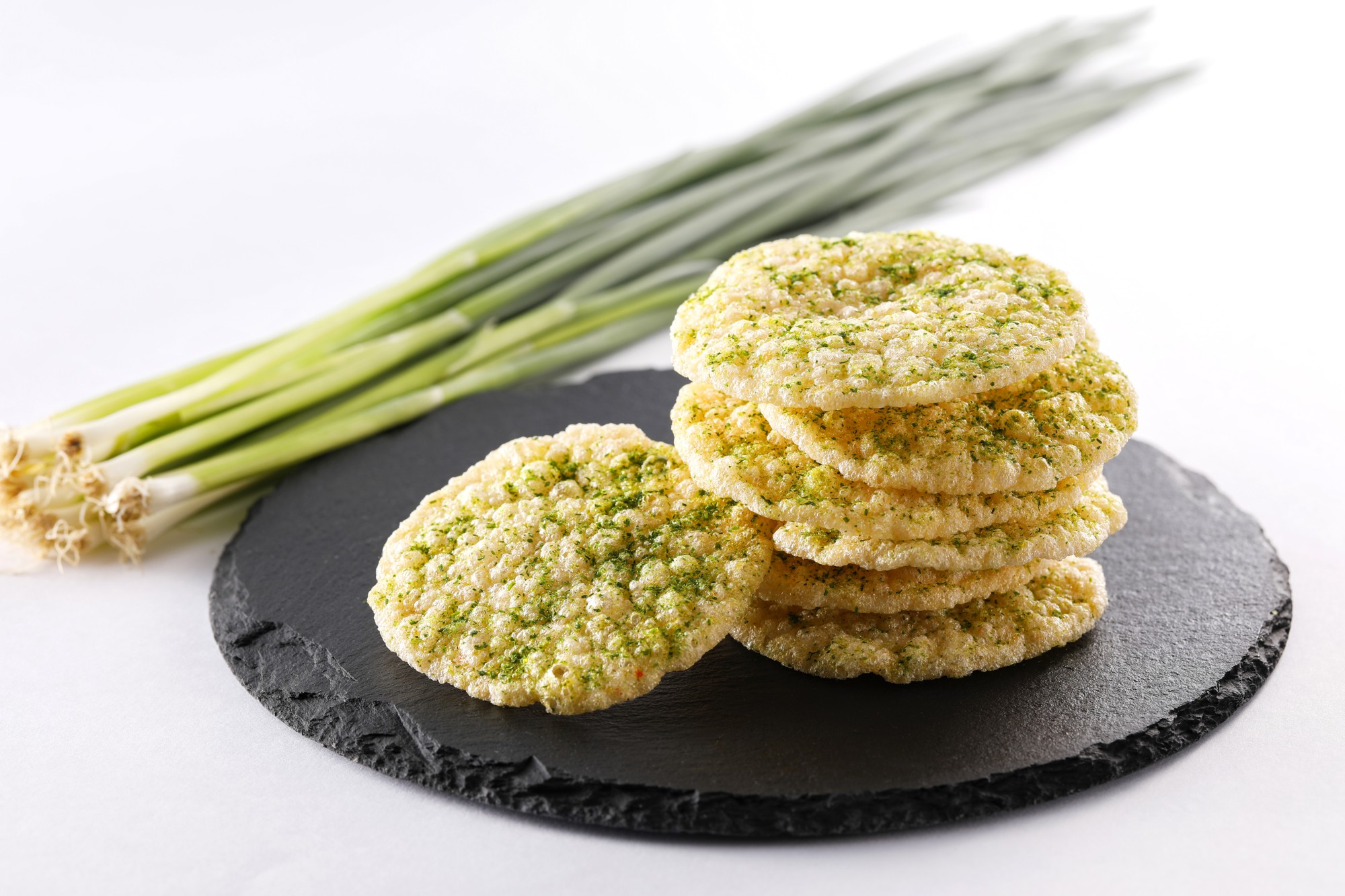 日本三大ねぎの一つ「博多万能ねぎ」の粉末を、1枚1枚に振りかけた逸品です。