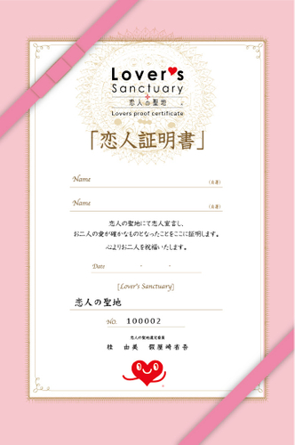 恋人の聖地「恋人証明書」+乾杯用ドリンク(おひとり様1杯)