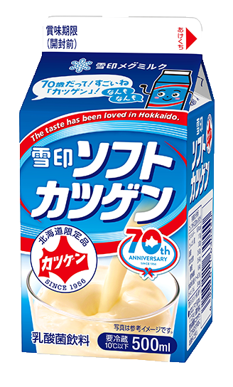 「雪印ソフトカツゲン」のルーツは、1938年発売の乳酸飲料「活素(かつもと)」にさかのぼります。「活素」に使用されていた乳酸菌は、1956年発売の瓶入り「雪印カツゲン」、さらに1979年発売の紙パック「ソフトカツゲン」へと引き継がれました。「カツゲン」の名前は「活力の給源」に由来し、「勝つ源(みなもと)」として、受験やスポーツの“ゲン担ぎ”にと北海道の皆様に親しまれています。