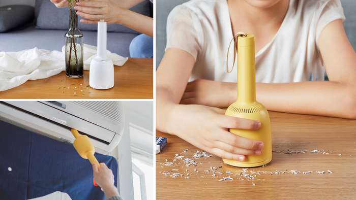 Vaccumi(バキューミ)は、お菓子などの食べこぼしや、宿題で出る消しゴムカスなど「掃除機を出すまでもないけど手で集めるのは大変…」と言った、ちょっとしたお掃除に便利。