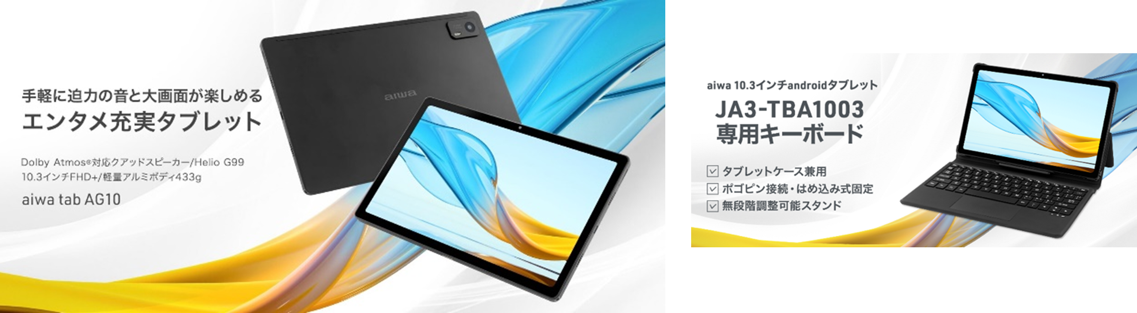“aiwaよりエンタメライフを充実させるタブレットが登場” 新製品【aiwa tab AG10】と専用キーボードが 本日3月14日より販売開始!