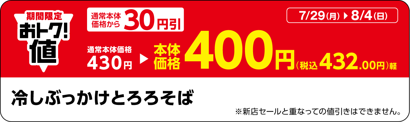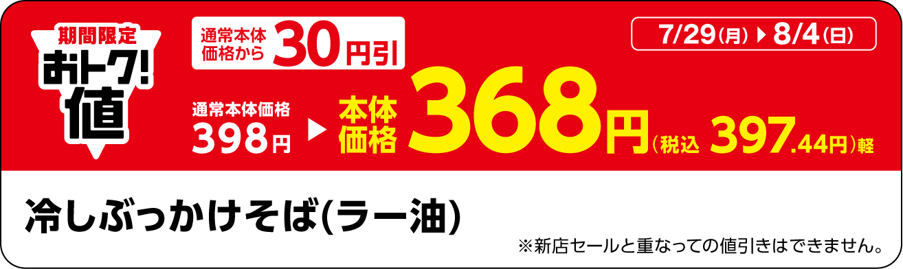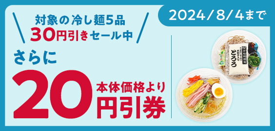 ・セール内容: 対象の冷し麺3品が本体価格より30円引き