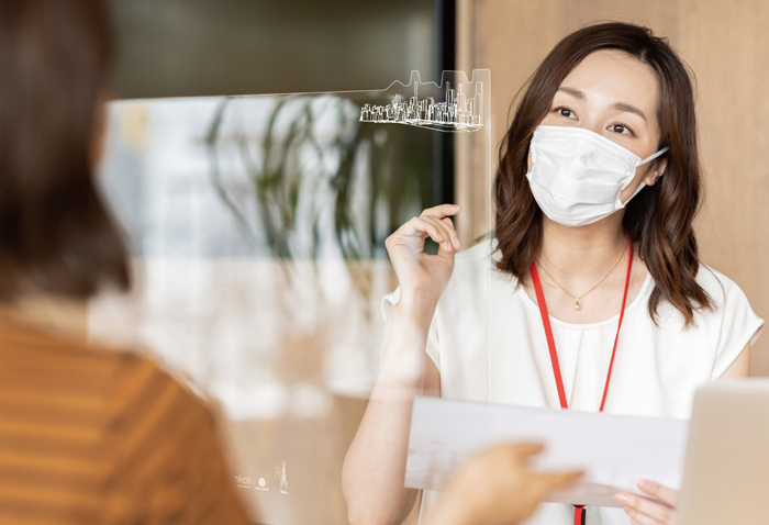 デスクや商談時に、自立式のアクリル製パーテーションで飛沫感染を抑制します。機能性だけではなくデザイン性も兼ね備えたオリジナルのパーテーションを1枚からお作りします。