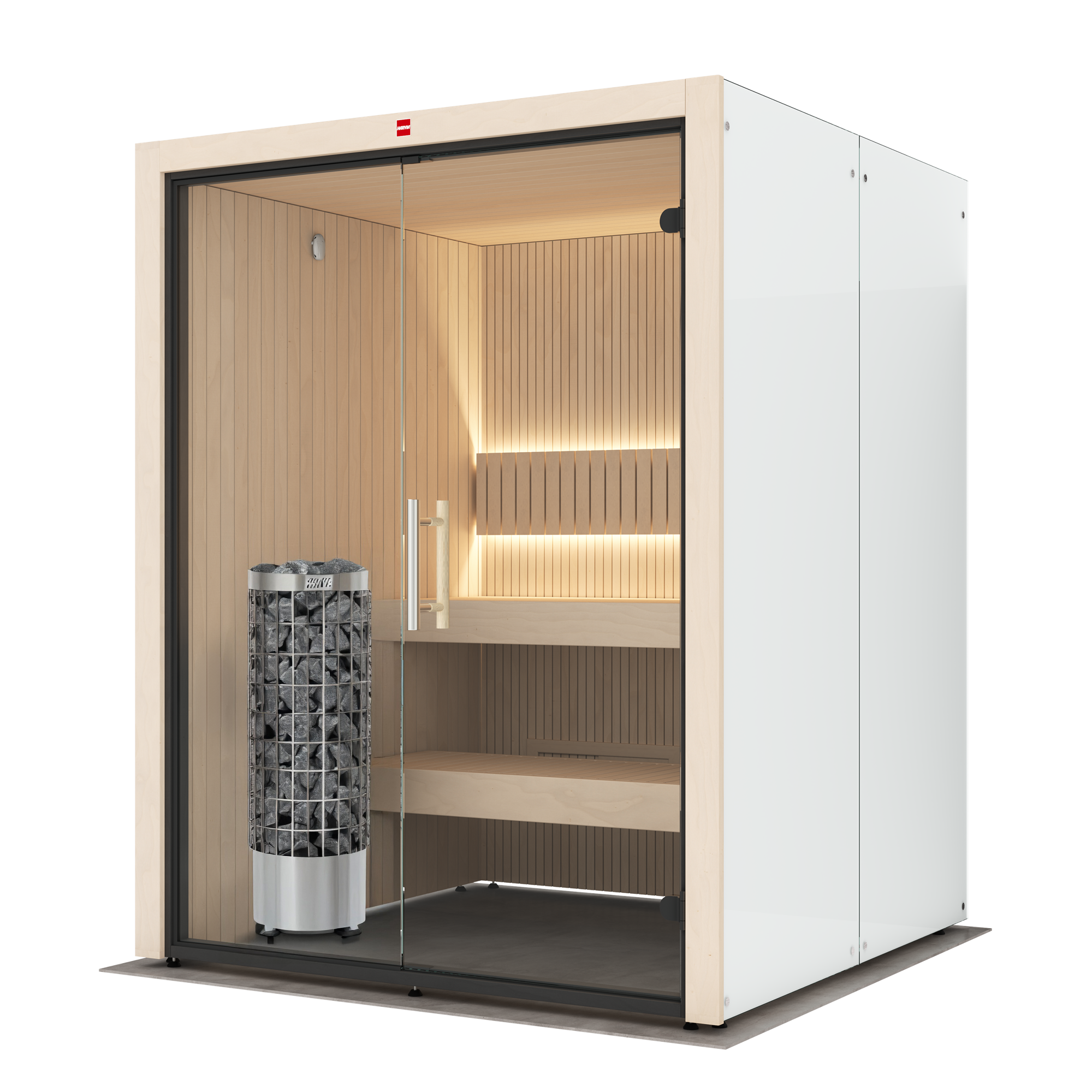 アーバンシリーズは、日本の住宅で一般的な白色クロスの壁面にも美しく調和する、モダンでスタイリッシュなデザインを特徴としたサウナキャビンです。
