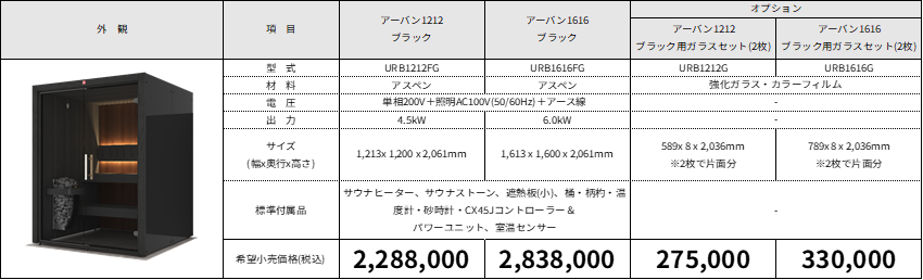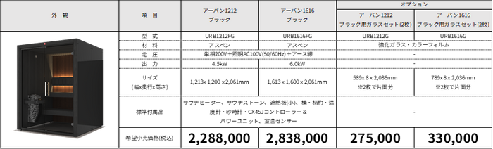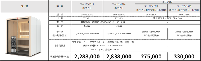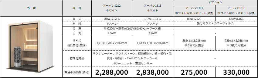 ■アーバンサウナキャビンラインナップ(全4型 +オプション)