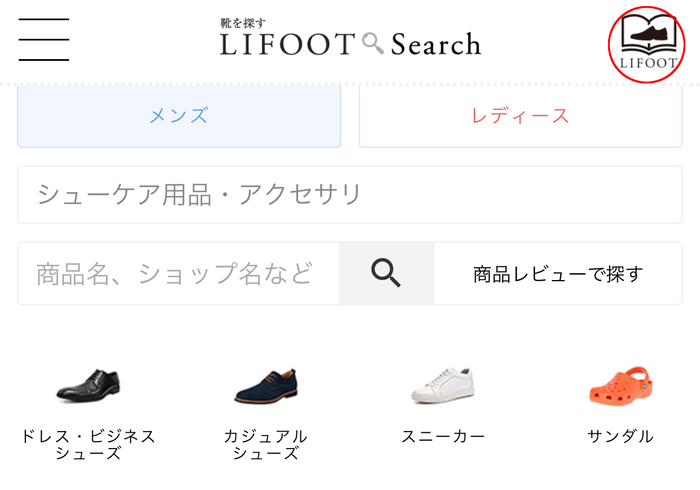 本のアイコンや、サイト内のバナーは姉妹サイト「靴と暮らすLIFOOT」へのリンク。こちらでは読み物をメインとした運営を行っております。