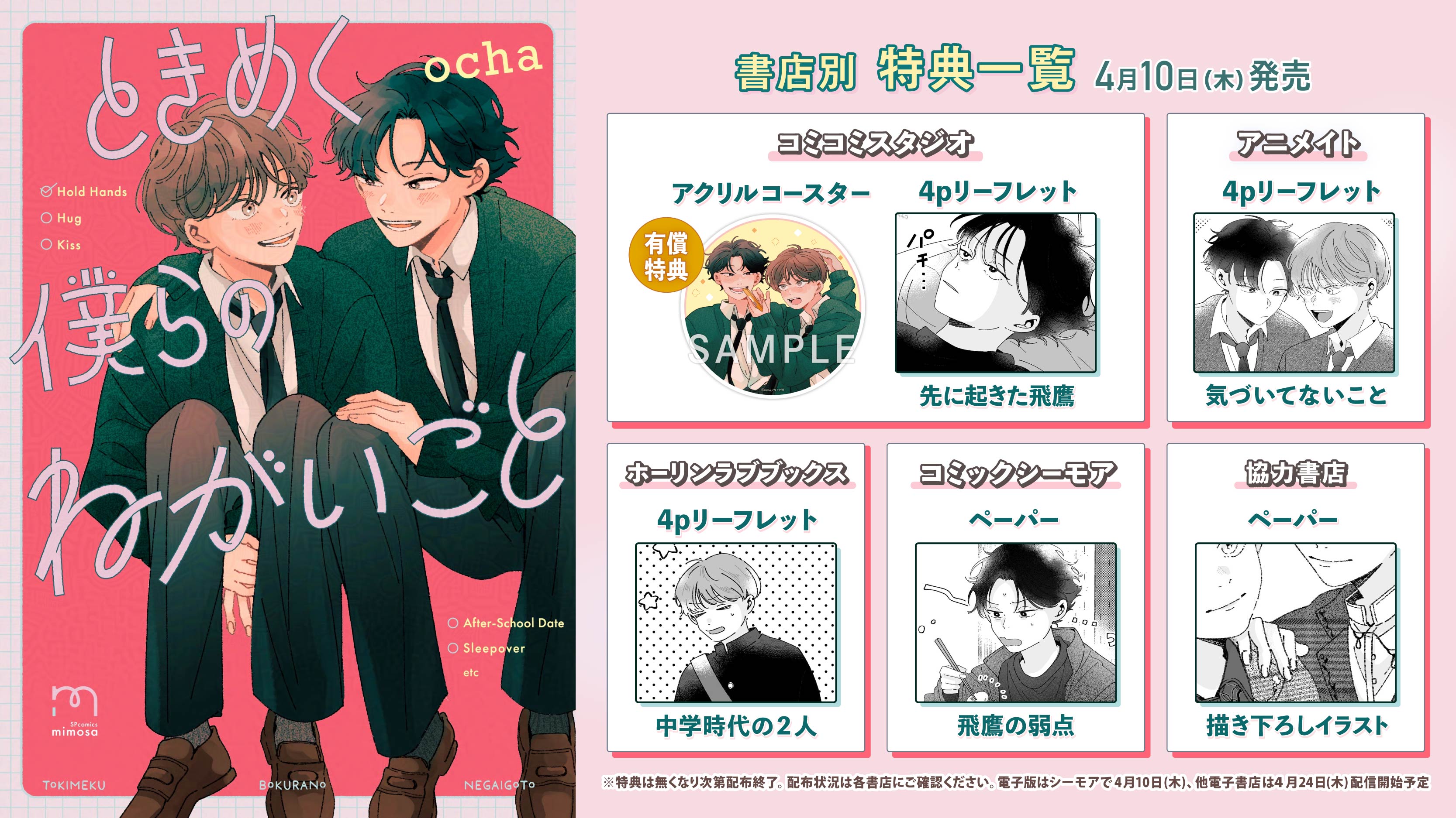 株式会社リイド社(所在地:東京都杉並区、代表取締役社長:齊藤哲人)は2025年4月10日(木曜日)に、『ときめく僕らのねがいごと』(ocha)を刊行いたします。