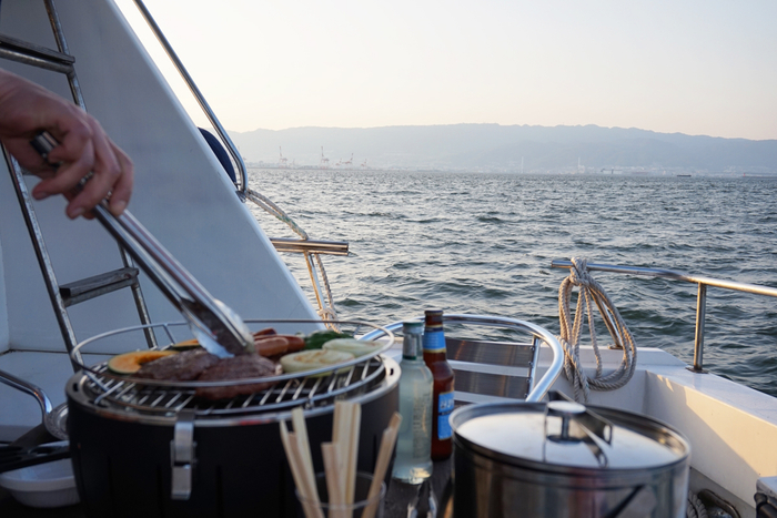 大阪北港マリーナを出発して「通常では味わえない、プライベートな景観を楽しむ」をテーマにしたクルージングプランです。国内外の富裕層やインバウンド観光客、隣接ホテルの宿泊客をターゲットにした、プライベートチャータークルーズといった特別感のあるクルージングプランのため、今までにはない新たな大阪観光の楽しみ方や非日常体験をお楽しみいただけます。また、海上のクルージングだけでなく、海で泳いだり船上でBBQを行うなどのアクティビティも含めた自由に遊ぶことのできる体験もでき、海上で様々な形でお楽しみいただけます。