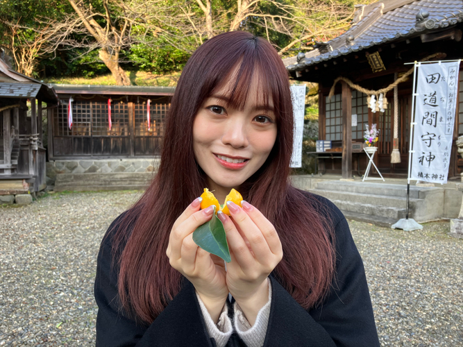 和歌山を訪れるのは初めてでわくわくしていました。想像以上に楽しい旅となり、また行きたいです。みかんの旅で特に印象に残ったのは橘本神社。特別に食べさせていただいた橘の実は少し甘酸っぱく、そこが美味しいと思いました。建物もみかんがモチーフでとても可愛かったです。今回の旅を通して、和歌山の魅力がたくさん伝わっていたら嬉しいです。視聴者の皆さまも、是非和歌山を訪れ楽しんでいただけたらと思います。