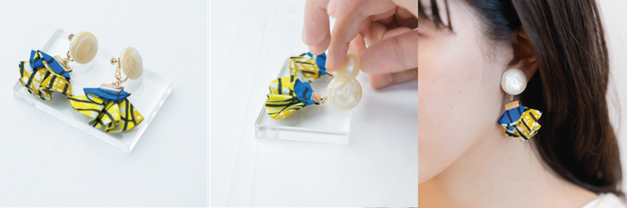 ● 第一弾提携企業のAFURIKA DOGS様から提供のはぎれを利用したハンドメイドアクセサリー