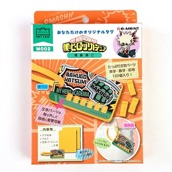 オレンジカラーが目を引く、パッケージのこちらは爆豪勝己デザインのマイタグです。パッケージからも彼の自信が伝わってきそうですね♪