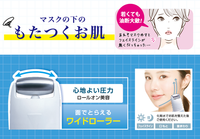幅広のローラーであごや首などたるみが気になる部分をしっかりマッサージできる美容できです。