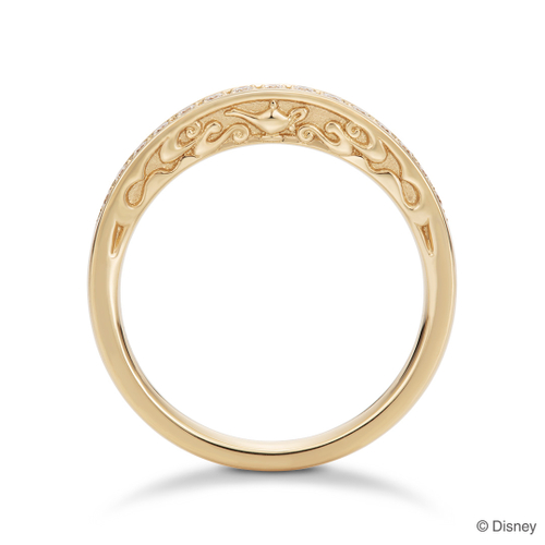 「アリエル」が住む海底をイメージしたデザイン。貝殻やサンゴ、海の泡を凹凸で表現しています。ダイヤモンドのまばゆい輝きは、「アリエル」の夢を追い求める強い姿勢を感じるよう。
