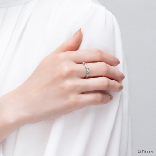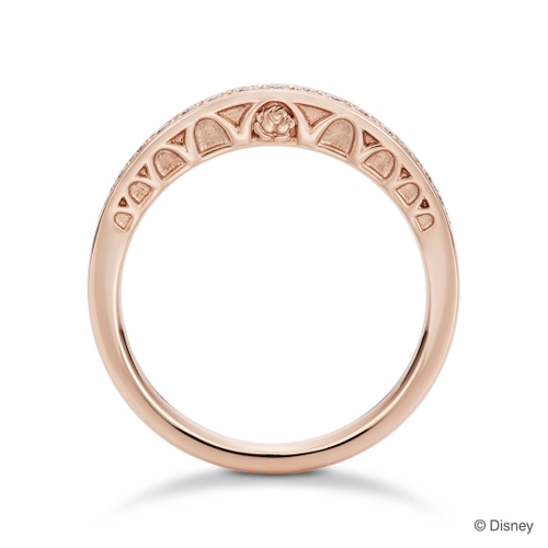 「ボールルーム」と「魔法のバラ」をモチーフに、『美女と野獣』の世界観を表現しました。1列に連なるダイヤモンドは、自分の価値観を大切に迷わず行動する「ベル」の決断力を表しているかのようにきらめきます。