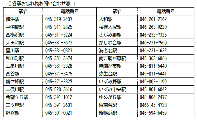 ■忘れ物に関するお問い合わせ先【相模鉄道・相鉄バス】