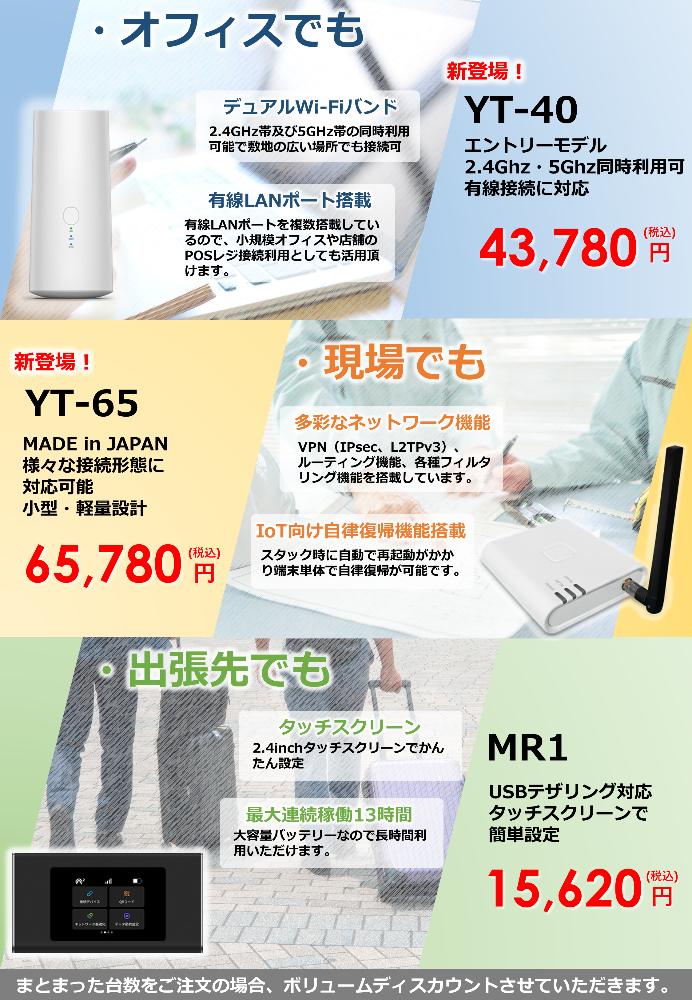ジャパンモバイル株式会社(本社:札幌市中央区、代表取締役社長:賣場崇大、以下「J-mobile」)は、「J-mobile公式サイト」と「Yahoo!ショッピングJ-mobileショップ」で、据置型モバイルWiFi 2機種『YT40』と『YT65』を2023年2月27日より販売開始します。