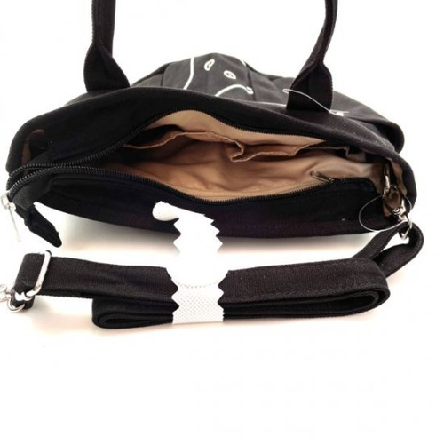 縦長すぎず横長すぎず、ちょうどいい形のトートバッグです。持ち手の部分がきゅっと絞られた形状なので持ちやすいのも特徴♡ブラックカラーに白いお化けちゃんが映えるデザインは大人も持ちたい!